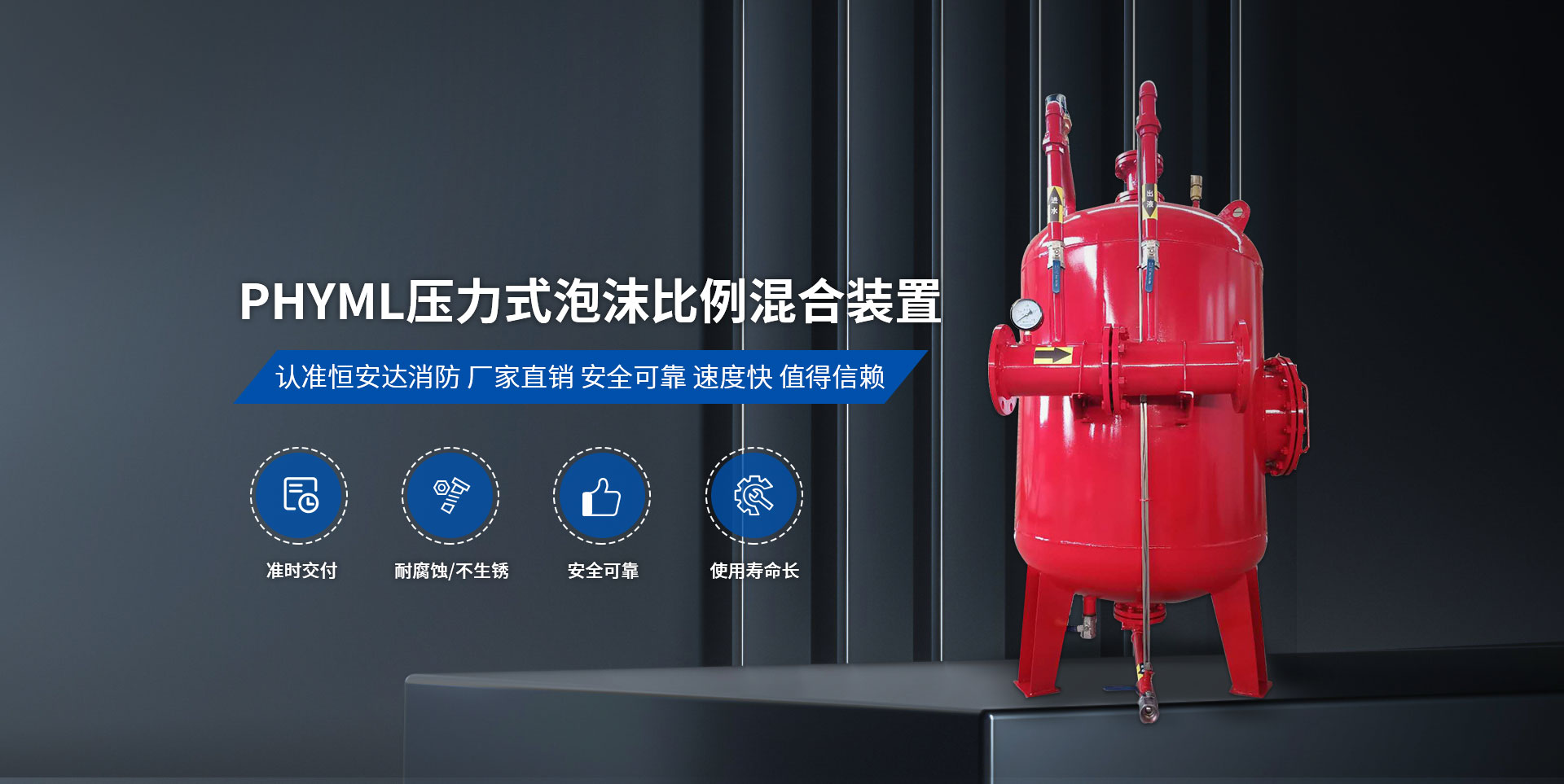 衛輝市恒安達消防設備有限公司,位于中國旅游城市比干故里——河南省衛輝市,公司位置緊鄰 107 國道、新濮公路、京珠高速,交通十分便利。  我公司主要產品有:PHY/PHYM系列壓力式比例混合裝置、消防增壓穩壓給水設備、半固定式泡沫滅火裝置、PC 系列泡沫產生器、PS/PP/PL 系列消防炮、PSG 型泡沫消火栓箱、七氟丙烷滅火裝置、水成膜泡沫滅火劑、合成泡沫滅火劑、抗溶水成膜泡沫滅火劑、抗溶泡沫滅火劑、高倍泡沫滅火劑、A 類泡沫滅火劑、水系泡沫滅火劑、消防泵等。并承接老油罐帶油無火花開孔消防改造工程。以上設備,廣泛用于石油、化工、機場、碼頭、電廠、水上船舶、油庫等場地的泡沫滅火裝置?! ∥夜緭碛懈鞣N工藝先進的專用設備 60 余臺套,各種試驗檢測設備 10 余臺套,擁有數十名技師等人才。本公司所有產品均通過國家消防裝備質量監督檢驗中心的型式檢驗。我公司用科學的管理模式,雄厚的技術力量,嚴格的質量保障體系,確保產品質量穩定可靠,快捷和完善的售后服務,樹立我們的企業形象并為消防事業作出貢獻?! 」咀詣摻ㄒ詠?,始終堅持“規范質量行為,滿足顧客要求”的質量和經營方針,一直堅持“以質量為基礎,以信譽為生命、以公平的價格贏得客戶”的信念,竭誠為廣大客戶和社會各界提供產品和良好的服務。